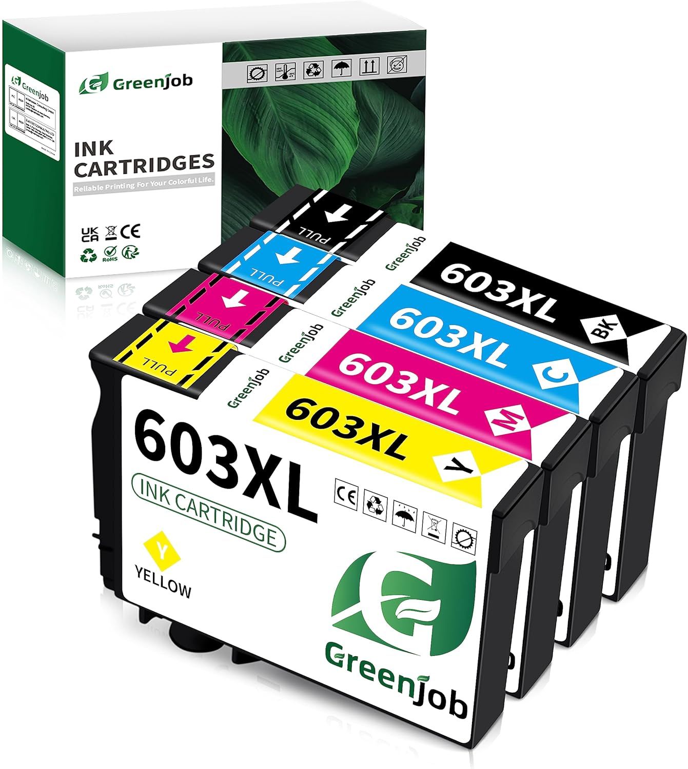 Greenjob 603XL Multipack Cartouche d'encre pour Epson 603 XL pour Epson Expression Home XP-2100 XP-2105 XP-2150 XP-2155 XP-3100 XP-3150 XP-3155 XP-4100 XP-4150 WF-2810 WF-2820 WF-2830 (Paquet de 4)