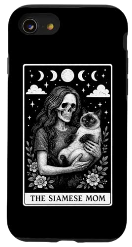 Carte de Tarot Squelette pour la fête des mères avec Inscription « The Siamois Mom Cat Mom » Coque pour iPhone SE (2020) / 7/8