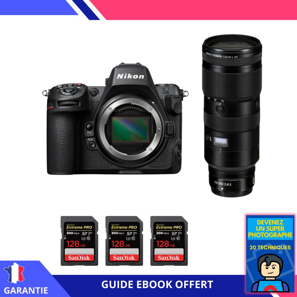 Nikon Z8 + Z 70-200mm f/2.8 VR S + 3 SanDisk 128GB Extreme PRO UHS-II SDXC 300 MB/s + Ebook 'Devenez Un Super Photographe' - Hybride Nikon