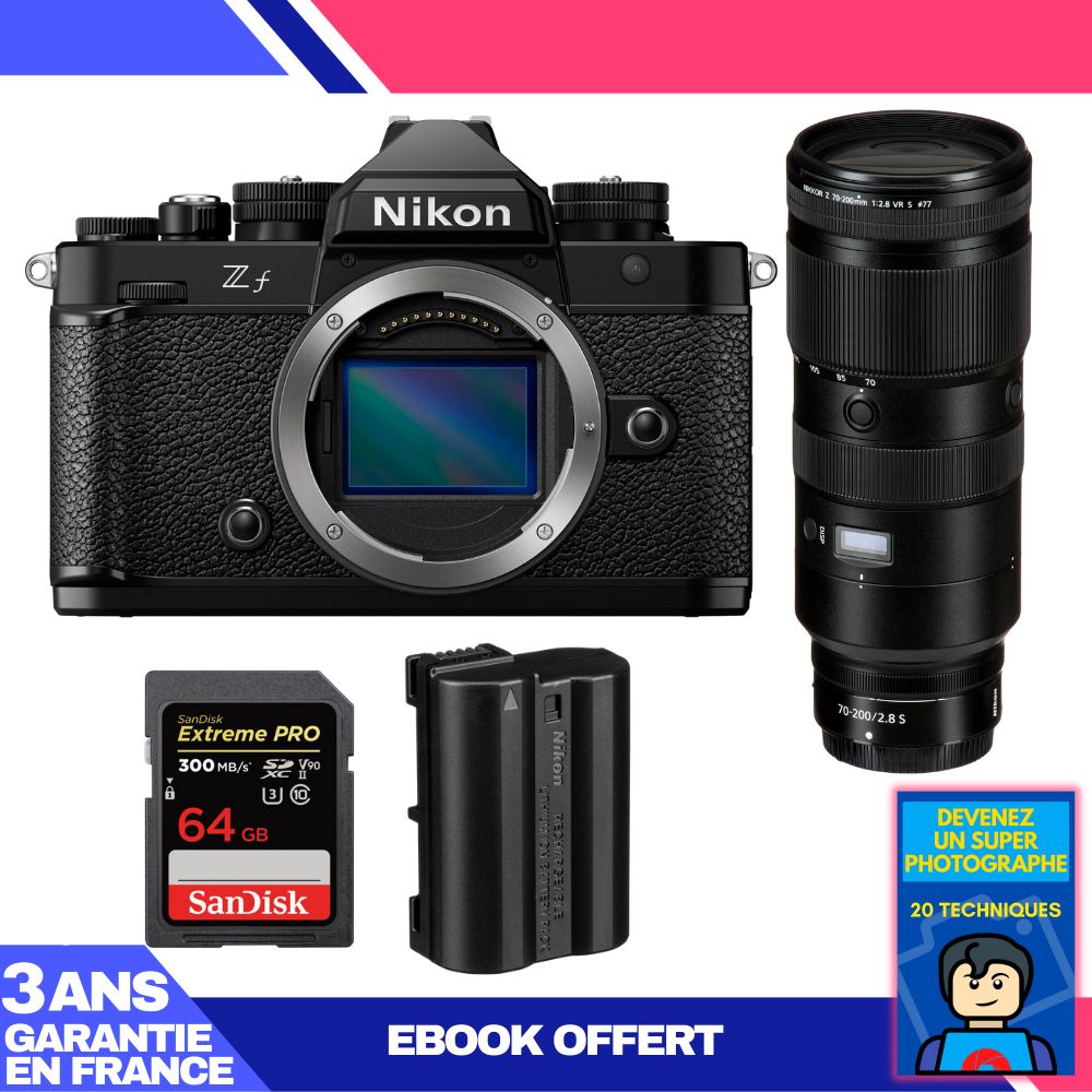 Boitier Nikon Zf + 70-200mm f/2.8 VR S + 1 SanDisk 64GB Extreme PRO UHS-II SDXC 300 MB/s + 1 Nikon EN-EL15C + Ebook 'Devenez Un Super Photographe