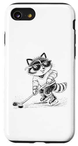Drôle de Raton Laveur Jouant au Hockey sur Glace avec bâton Coque pour iPhone SE (2020) / 7/8