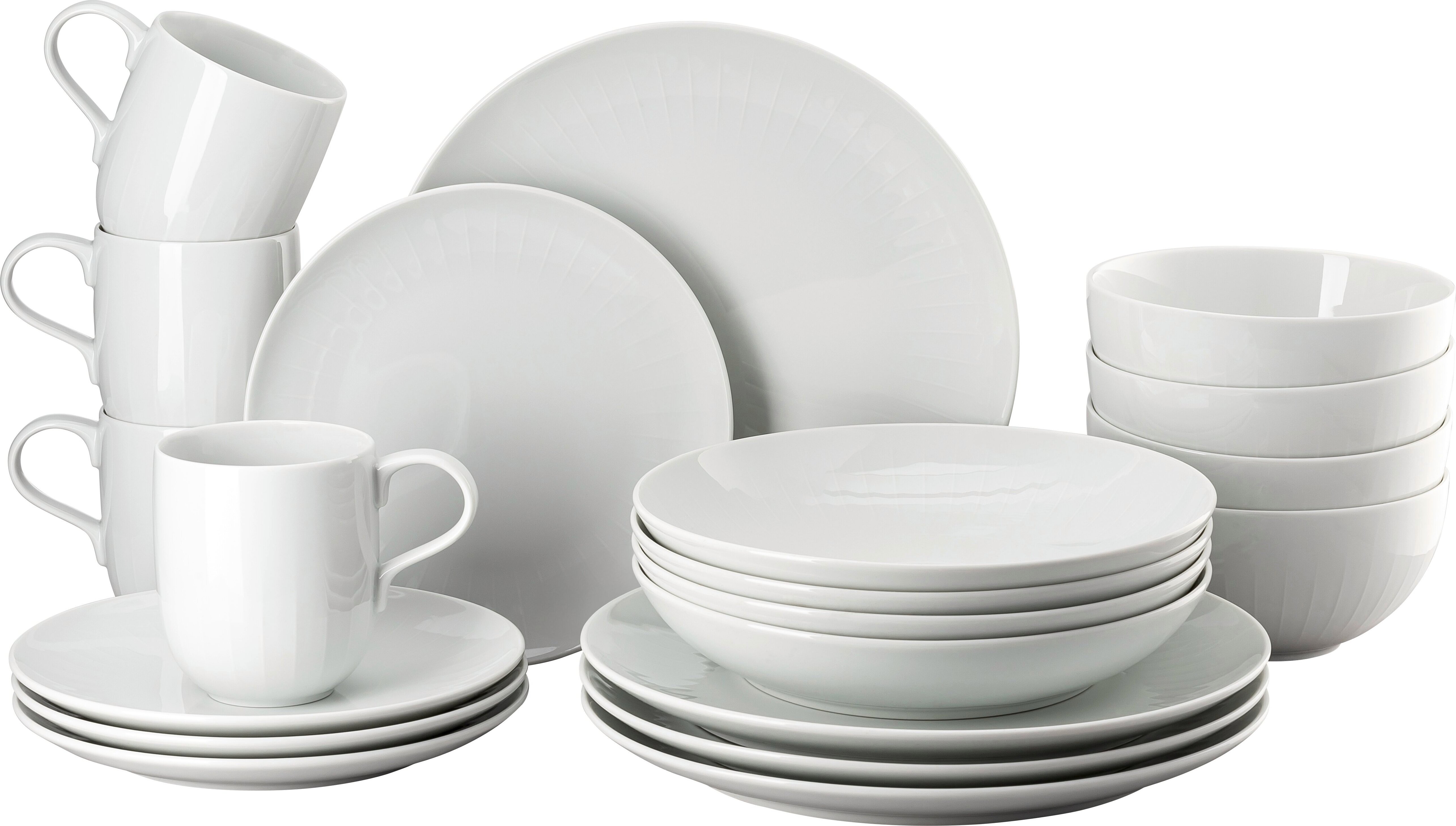Rosenthal Set 20-tlg. Joyn White Porzellan Weiß Teller flach 20 cm|Joyn|White|44020-800001-10860 Teller flach 27 cm|Joyn|White|44020-800001-10867 Teller tief 23 cm|Joyn|White|44020-800001-10353 Schale tief 15 cm|Joyn|White|44020-800001-1575