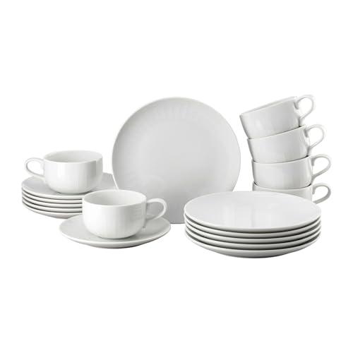 Rosenthal Joyn White Service combiné de 18 pièces, en grès, vaisselle, vaisselle, service à café, assiettes à petit-déjeuner, tasses blanches
