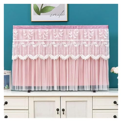 JBJYGSG Housse éCran Tv TV Cover Lace Embroidery Living Room 75 Inch 85 Inch Cover Simple TV Set Wall Mounted LCD Yarn Curtain(Pink,120x75cm)