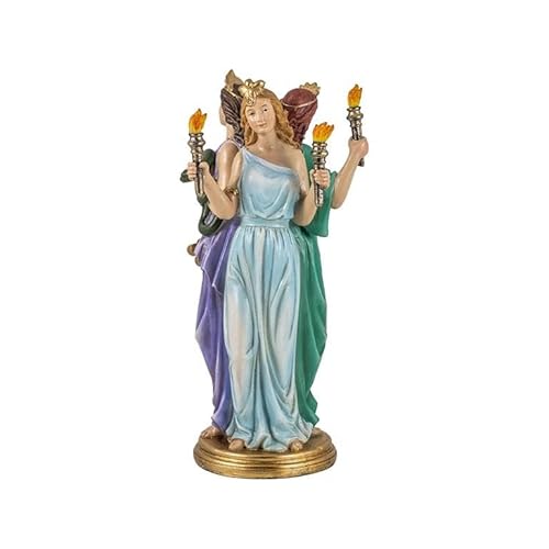 DRW Figurine Hekate déesse Grecque de la Magie, du Carrefour et de la Lune, gardienne des chemins et des Esprits en résine Peinte à la Main, 20 cm