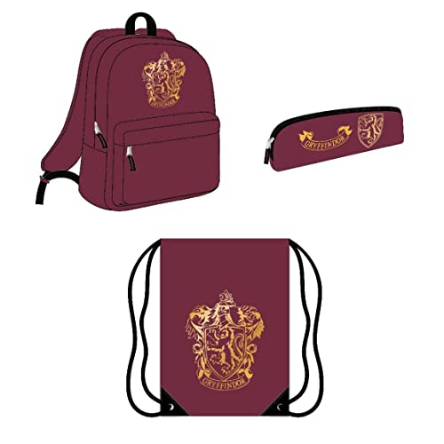 CERDÁ LIFE'S LITTLE MOMENTS - Ensemble Sac d'École, Trousse et Sac à Cordons pour Enfants de la Maison Gryffondor Poudlard | Idéal pour la Rentrée des Classes - Licence Officielle Warner Bros