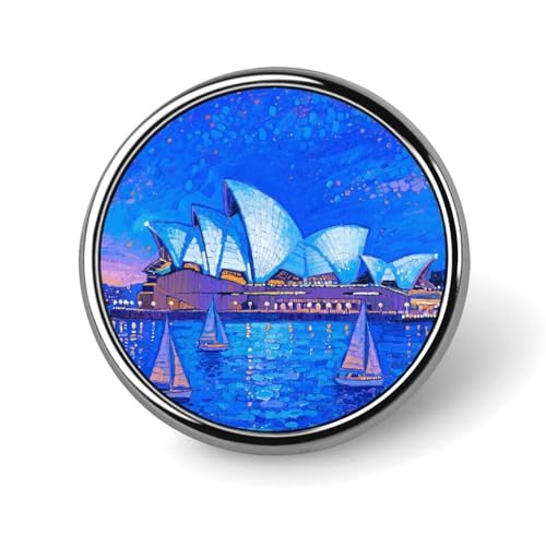 Broche personnalisée Sydney Opera House Blue Night (2,5 cm) - Badge vintage pour sacs, chapeaux, vestes, sacs à dos, costumes, chemises, vêtements, bijoux, collection, cadeau pour femmes et hommes -