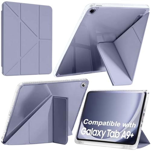 A-BEAUTY Coque Compatible avec Samsung Galaxy Tab A9 Plus 11 Pouces 2023 (SM-X210/X215/X216/X218) avec S Pen Porte-Stylet, Coque Transparente Antichoc, Support de Y 6 en 1, Lavande