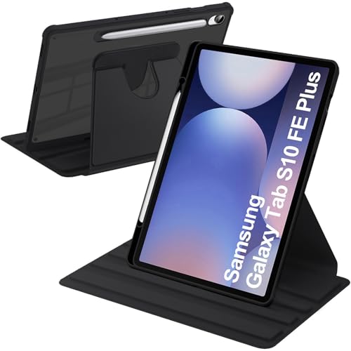 A-BEAUTY Coque Rotative Compatible avec Samsung Galaxy Tab S10 FE Plus 13.1 Pouces 2025 (SM-X620/X626/X626B), Étui Housse Dos Transparent Antichoc, Réveil/Sommeil Auto, Noir