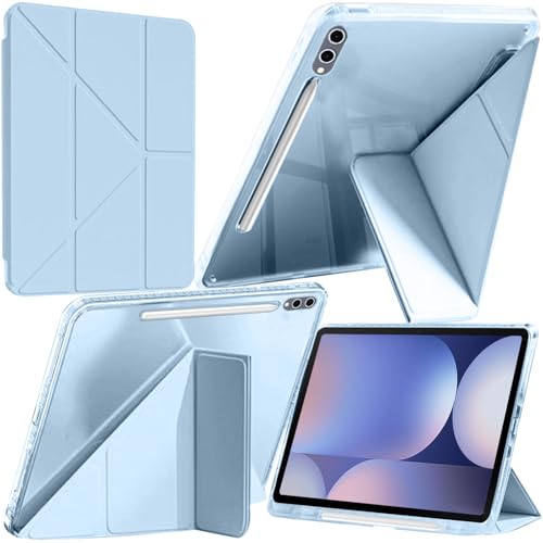 A-BEAUTY Coque Compatible avec Samsung Galaxy Tab S10+ 2024/Tab S9 FE+/S9+ 2023 12.4 Pouces, Étui Housse Transparente Antichute, Support Forme de Y 6 en 1, Bleu Ciel