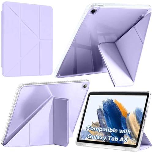 A-BEAUTY Coque Compatible avec Samsung Galaxy Tab A8 10,5 Pouces (SM-X200/X205/X207) avec Porte-Stylo S, Coque Transparente Antichoc, Support Forme de Y 6 en 1, Lilas