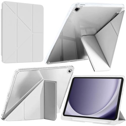 A-BEAUTY Coque Compatible avec Samsung Galaxy Tab A9 8,7 Pouces 2023 (SM-X110/X115/X117) avec Porte-Stylo S, Coque Transparente Antichoc, Support Forme de Y 6 en 1, Gris