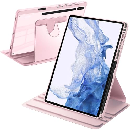 A-BEAUTY Coque Rotative Compatible avec Samsung Galaxy Tab S8 Plus 2022 / S7 FE 2021 / S7 Plus 2020 12.4 Pouces Étui Dos Transparent Antichoc, Réveil/Sommeil Auto, Rose