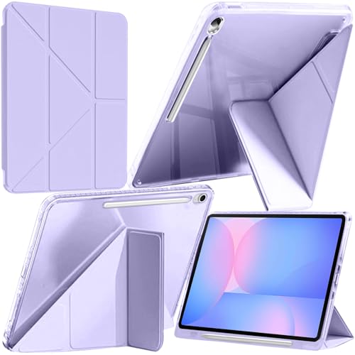 A-BEAUTY Coque Compatible avec Samsung Galaxy Tab S10 FE Plus 13.1 Pouces 2025 (SM-X620/X626/X626B), Étui Housse Transparente Antichute, Support Forme de Y 6 en 1, Lavande