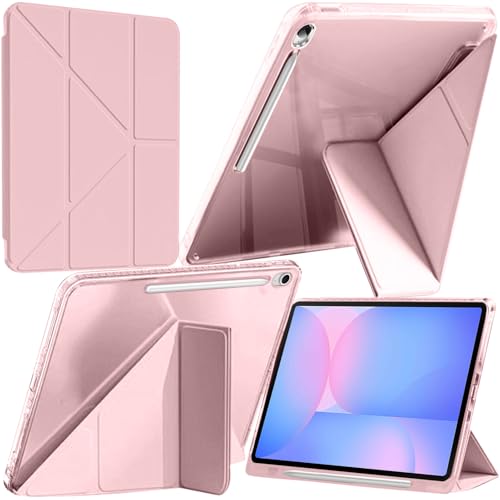 A-BEAUTY Coque Compatible avec Samsung Galaxy Tab S10 FE Plus 13.1 Pouces 2025 (SM-X620/X626/X626B), Étui Housse Transparente Antichute, Support Forme de Y 6 en 1, Rose