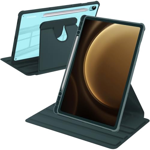 A-BEAUTY Coque Rotative Compatible avec Samsung Galaxy Tab S10 FE 2025 / Samsung Galaxy Tab S9 FE 10,9" / S9 11" 2023, Étui Housse Protection Dos Transparent Antichoc, Vert Foncé
