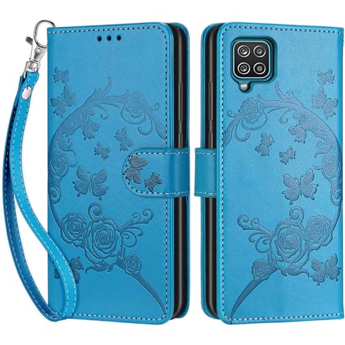 Coque pour Samsung Galaxy A12, Coque Samsung Galaxy M12, Etui Protection Housse Premium Cuir de Portefeuille en Cuir Fermeture Magnétique Flip Case pour Samsung Galaxy A12 / M12 / F12 Coque (Bleu)