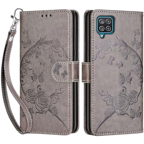 Coque pour Samsung Galaxy A12, Coque Samsung Galaxy M12, Etui Protection Housse Premium Cuir de Portefeuille en Cuir Fermeture Magnétique Flip Case pour Samsung Galaxy A12 / M12 / F12 Coque (Gris)