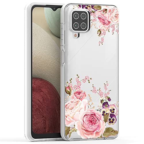 Yerebel Coque pour Galaxy A12/Samsung A12 5G Transparent Étui de Protection en Antichoc avec Coins Renforcés, Clair Mince Souple TPU pour Samsung Galaxy A12 5G Fleur de Rose
