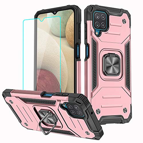 Wousunly Compatible avec Coque Samsung A12, Souple Samsung Galaxy A12 Case Silicone et Anneau pivotant à 360° Support Telephone Voiture magnétique Protection Antichoc (Rose)