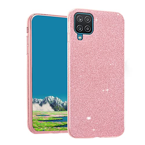 Wousunly Coque pour Samsung A12 Paillette, Coque Samsung Galaxy A12 Antichoc Silicone Housse de Protection Ultra Fine Slim Glitter Etui en TPU Souple Bumper Cover (Rose)