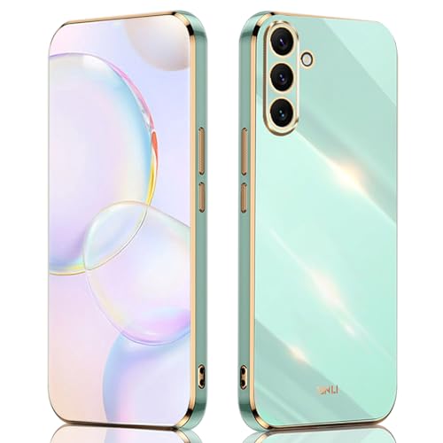 ILING Coque pour Samsung Galaxy A15 5G/4G, Simple Couleur Unie Dos Galvanisé Bordure Dorée Design Souple TPU Antichoc Protection Ultra Mince Housse Femme Étui (Vert)
