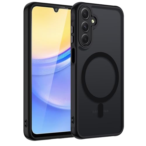 TUUTPU Coque pour Samsung Galaxy A15 5G/4G Compatible avec Magnet, Magnétique Etui Translucide Matte Arrière Case Fine Antichoc Militaire Protection Housse PC Dur Anti Rayures Dos+ TPU Bumper, Noir