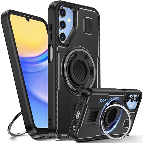 Tuvror Coque pour Samsung Galaxy A15 5G /4G avec Support. [Anneau Rotatif à 360° et béquille]. Coque de Protection Robuste Antichoc pour Samsung A15, Noir
