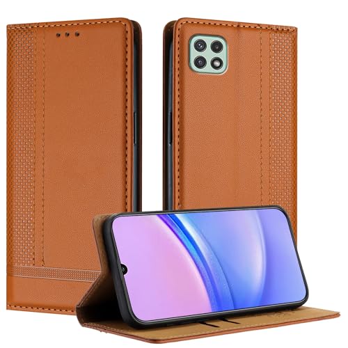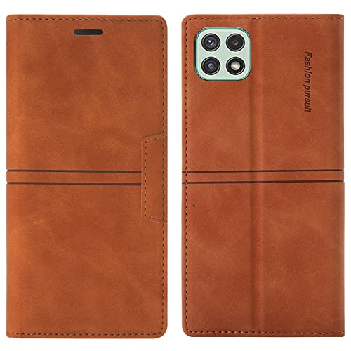 Coque en Cuir Compatible avec Samsung Galaxy A22 5G,Compatible avec Samsung SM-A226B/DSN Galaxy A22 5G / SM-A226L Galaxy Buddy 5G Étui pour téléphone à clapet Coque Brown