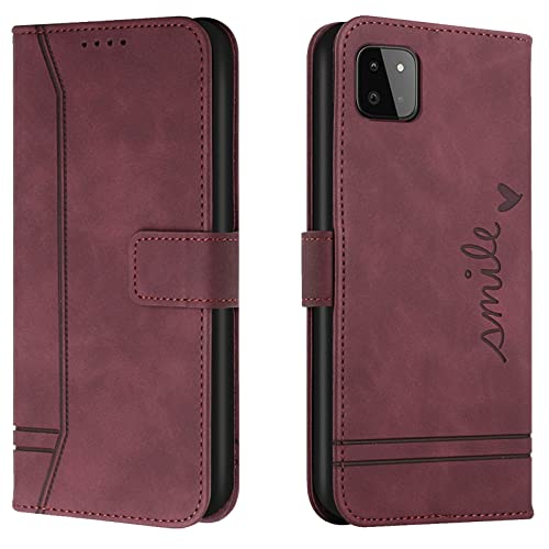 Laybomo Coque pour Samsung Galaxy A22 5G, Etui Samsung Galaxy A22 5G Housses étui à Rabat en Cuir Antichoc Silicone avec Porte-Cartes de Visite, Etuis de Ceinture pour Samsung Galaxy A22 5G, Rouge