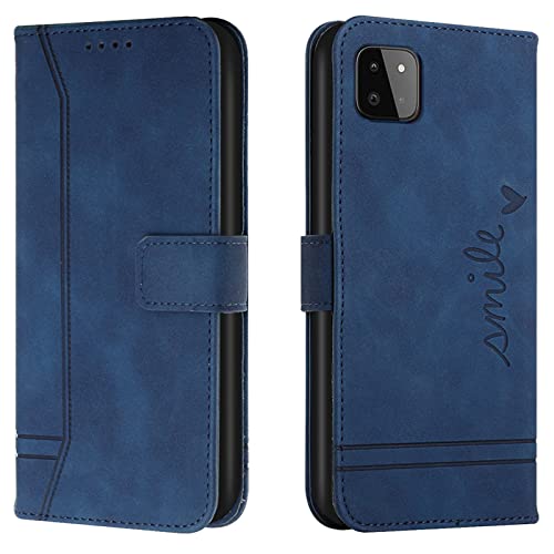 Coque en Cuir Compatible avec Samsung Galaxy A22 5G,Compatible avec Samsung SM-A226B/DSN Galaxy A22 5G / SM-A226L Galaxy Buddy 5G Étui pour téléphone à clapet Coque Blue