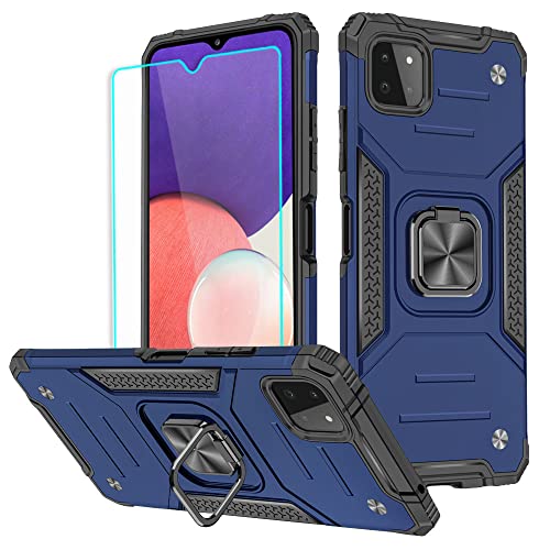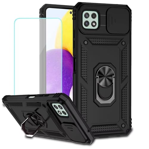 Jhxtech Coque pour Galaxy A22 5G, coque Samsung A22S SM-A226B avec protecteur d'écran en verre trempé et protection coulissante pour appareil photo, anneau magnétique et béquille pour Samsung Galaxy