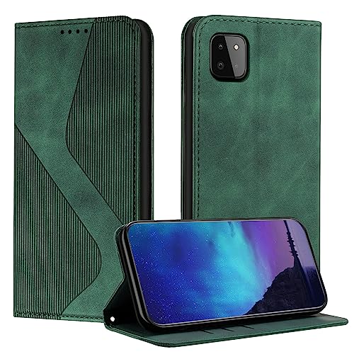 Fatcatparadise Coque pour Samsung Galaxy A22 5G, Coque Samsung A22 5G, Housse Samsung A22 5G, Housse en Cuir PU Pochette Portefeuille Magnétique Etui de Protection, Flip Case pour Galaxy A22 5G (Vert)