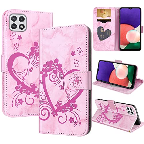 Fatcatparadise Coque pour Samsung Galaxy A22 5G, Etui Samsung A22 5G, Antichoc TPU Housse Cuir Flip Case Portefeuille Etui Rabat [Magnétique] Coque de Protection Fentes pour Cartes Cover (Rose)
