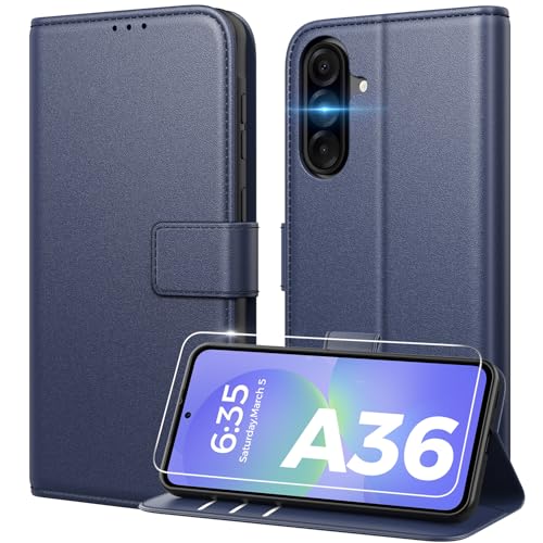 Peakally Coque pour Samsung Galaxy A36 5G [ Verre Trempé Protection *1 ] [ Blocage du Signal RFID ] [ Premium PU ] [ Pochette de Portefeuille ] Etui à Rabat pour Samsung A36 5G,Bleu