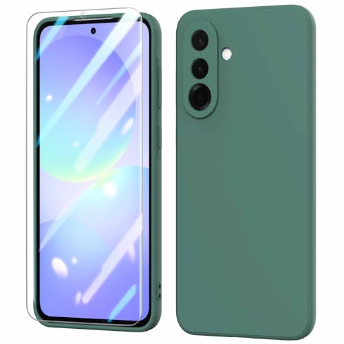 BUTISHIYU Coque pour Samsung Galaxy A36 5G Case avec Protecteur D'écran en Verre Trempé,Housse Doublure Douce en Tissu Microfibre Anti-Chocs Coque Compatible avec Samsung Galaxy A36 - Vert Nuit