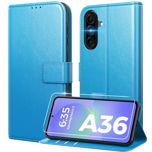 Peakally Coque pour Samsung Galaxy A36 5G [ Verre Trempé Protection *1 ] [ Blocage du Signal RFID ] [ Premium PU ] [ Pochette de Portefeuille ] Etui à Rabat pour Samsung A36 5G,Bleu Vif