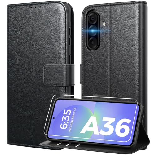 Peakally Coque pour Samsung Galaxy A36 5G [ Verre Trempé Protection *1 ] [ Blocage du Signal RFID ] [ Premium PU ] [ Pochette de Portefeuille ] Etui à Rabat pour Samsung A36 5G,Noir