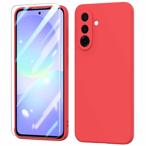 Fyriswho Coque pour Samsung Galaxy A36 5G + 1 Pièces Verre Trempé, Coque Galaxy A36 Souple Silicone Mince Étui Protection Anti-Rayures Housse pour Samsung Galaxy A36 5G (6.7") - Rouge