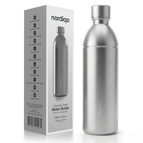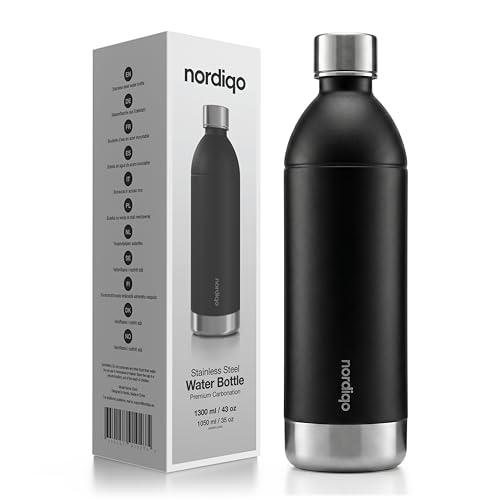 Nordiqo Bouteille Premium en Acier Inoxydable 1L / 1000 ml | Compatible avec Aarke Carbonator 3, Sodastream (sauf Crystal + Jet) et bien d'autres | Lave-Vaisselle et Sans Date d'Expiration