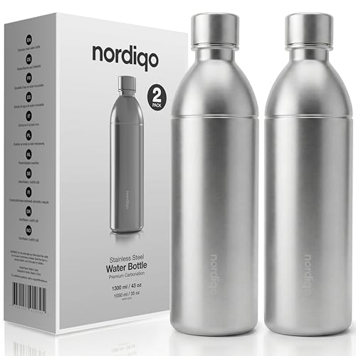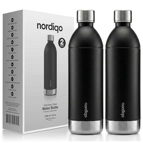 Nordiqo Bouteille Premium en Acier Inoxydable 1,3L / 1300 ml | Compatible avec Aarke Carbonator 3 | Lavable Lave-Vaisselle | Sans Expiration ni BPA | Anti-Fuite | Acier Épais | Lot de 2