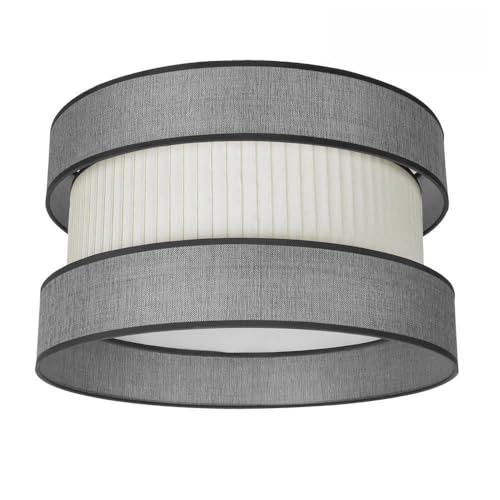 REV Abat-jour rond vintage en coton de haute qualité de 42 cm de diamètre - Abat-jour de rechange pour suspension et lampadaire - Gris - Culot E27