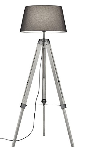 Reality Leuchten Lampadaire Tripod, structure en bois/Abat-jour en tissu, E27, 60 W, gris, 72 x 72 x 143 cm