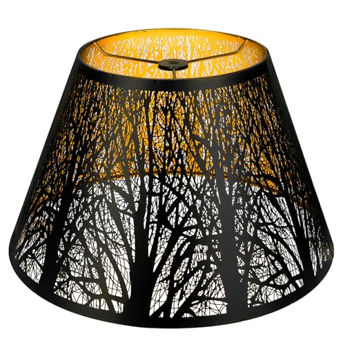 ALUCSET Abat-jour en métal avec motif d'arbres pour lampe de table et lampadaire, 17,8 x 33 x 19,8 cm, lin naturel, fabriqué à la main, araignée