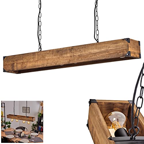 Suspension Olomouc,lampe à suspendre en métal/bois noir/naturel, lampe à suspendre avec tige en bois, maillons de chaîne et abat-jour réglable, hauteur max. 119 cm, 4 flammes, E27, sans ampoules