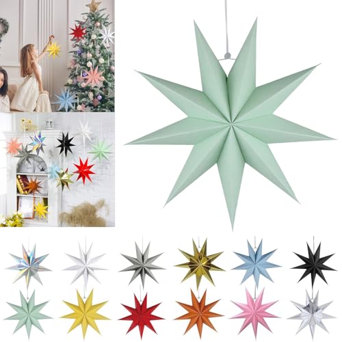 Étoile en papier à neuf pointes - Décoration de lanterne de Noël | Abat-jour en papier à suspendre pour fenêtres d'arbre de Noël, vitrines, centres commerciaux, décoration intérieure