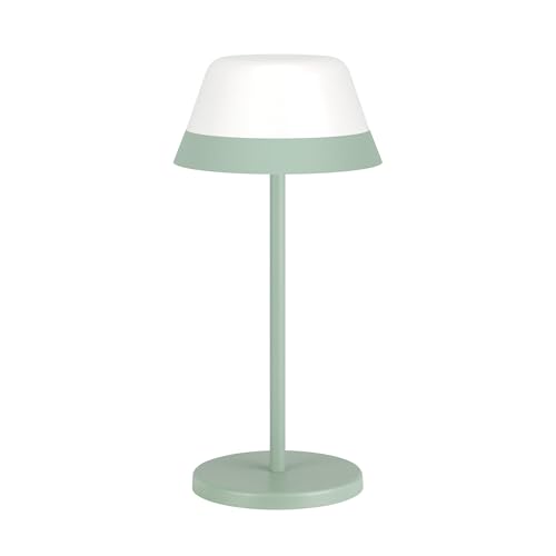 Eglo LED Lampe de table extérieure Meggiano, éclairage d'extérieur pour camping, intensité variable, sans fil, abat-jour à suspendre, USB, plastique en blanc et vert, blanc chaud, RGB, IP54