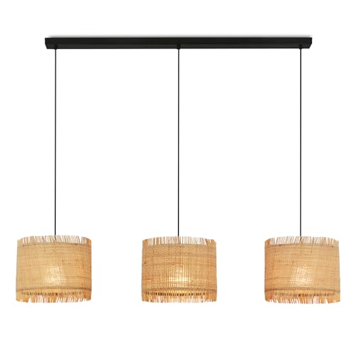BRILONER - Lampe à suspendre avec abat-jour en raphia, 3x E27 douille, max. 10 W, Boho, aesthetic, lampe à suspendre, lampe de table à manger, lampe de salon, 116x25x128,5 cm, naturel
