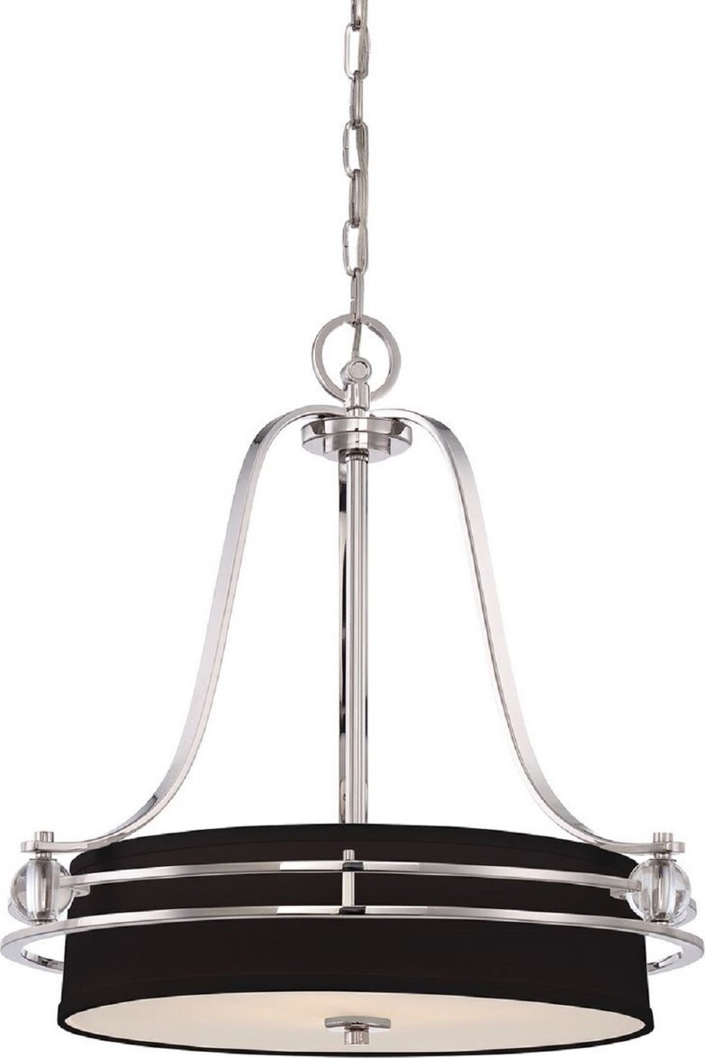 Casa Padrino Luxus Art Deco Lampe à suspendre Argent / Noir Ø 58,4 x H. 61 cm - Lampe à suspendre ronde en métal avec abat-jour - Lampe à suspendre de salon - Luminaires Art Deco - Luminaires de luxe