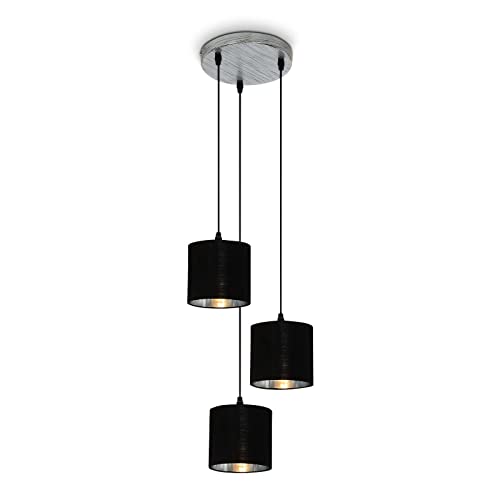 BRILONER - Lampe à suspendre rétro, Lampe à suspendre, vintage, Lampe à suspendre abat-jour en tissu, Lampe de salle à manger, Réglable en hauteur, E14, argent-noir